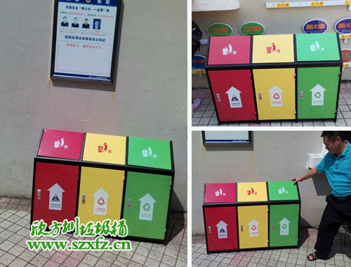 深圳市公安分局這款F98鋼板三分類垃圾桶的規(guī)格為:1220*430*890mm,鋼制垃圾桶呈屋形,三分類有三種顏色。從左到右順序依次排列,分別紅色,紅色,綠色三種顏色組成。屋形投遞口,絲印投遞人物標志,輕輕一推即可,把垃圾廢物放進去。正面絲印有三種標志,有毒廢棄物,不可回收,可回收三類。鋼制垃圾桶一種存放垃圾的容器,使用冷軋鋼板或者鍍鋅鋼板制作而成。因為產(chǎn)品表面經(jīng)過噴塑和酸處理,防腐蝕性能更高。采用酸處理+噴塑處理,更利于防銹,增加使用壽命。這是鋼制垃圾桶所具有的強大的優(yōu)勢。