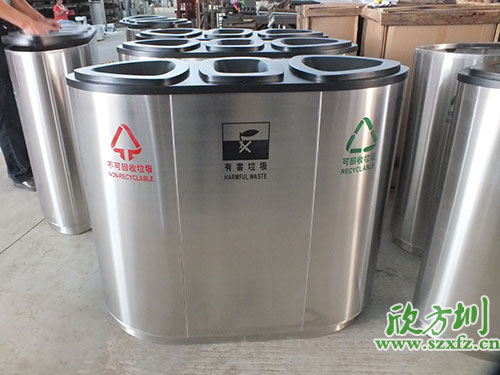 不銹鋼三孔分類環(huán)?;厥障涫褂梅秶鷱V,表面光滑、亮麗,是電梯口、寫字樓、學(xué)校、物業(yè)、賓館、酒店、機(jī)場(chǎng)、汽車站等擺放的首選。