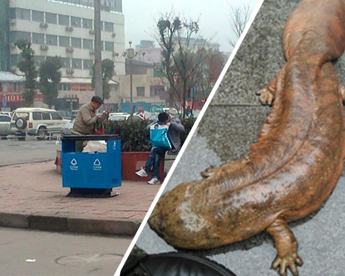 成都火車(chē)東站廣場(chǎng)外圍滿了人,大家都好奇地看著在地上爬來(lái)爬去的4個(gè)小家伙,它們可不是普通動(dòng)物,而是國(guó)家二級(jí)保護(hù)動(dòng)物——娃娃魚(yú)。它們的來(lái)歷撲朔迷離,據(jù)說(shuō)是環(huán)衛(wèi)工在打掃垃圾桶時(shí),從一個(gè)塑料袋里翻出來(lái)的,究竟是何人所丟不得而知?,F(xiàn)在4條娃娃魚(yú)被送往成都動(dòng)物園,暫未有發(fā)現(xiàn)不適現(xiàn)象。
