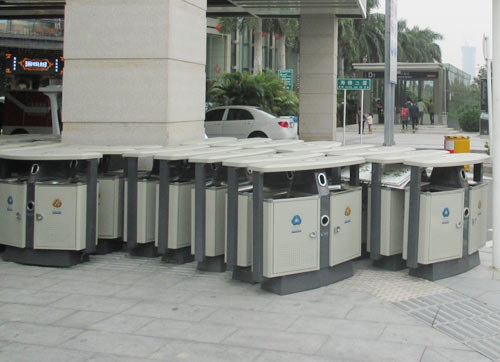 城市垃圾桶定期更新替換有助于解決垃圾桶陳舊、破損等問題。隨著城市管理精細(xì)化程度加深,垃圾分類工作變得越來越重要。新采購安裝的垃圾分類果皮箱除設(shè)有可回收、不可回收兩個(gè)垃圾收集桶外,更加重視分類的概念,專門設(shè)計(jì)了“滅煙處”和“電池回收處”,從設(shè)施配套上引導(dǎo)市民進(jìn)行垃圾分類工作。