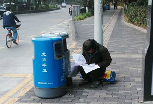 2月14日上午8時39分,網(wǎng)友高小姐報(bào)料稱,早上8時05分在深圳龍華大浪桃源賓館公交站旁,一位拾荒男子蹲在垃圾桶旁非常認(rèn)真的在看一份小學(xué)數(shù)學(xué)卷子,讓準(zhǔn)備去上班的高小姐肅然起敬。