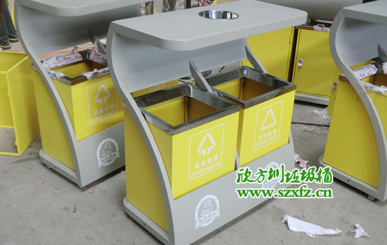 海南省??谑?a href="http://m.rethinkbiologynotes.com/product_26.html">鋼制垃圾桶,是按照顧客的圖紙要求來制作。垃圾桶頂部弧形設(shè)計,呈現(xiàn)愛心形狀,用來防止雨水傾入內(nèi)桶。左右兩桶,采用黃顏色噴漆,內(nèi)桶充分利用空間。簡約搭配,巧妙的設(shè)計,多了一份有特色,有創(chuàng)意,有內(nèi)涵!