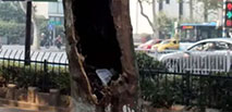 10月16日,南京,中山東路人行道邊上,一顆法國(guó)梧桐的樹干里滿是行人隨手丟棄的各式的垃圾,有香煙頭、果皮、紙杯、飲料水瓶等等,樹洞簡(jiǎn)直成了“垃圾桶&rd...