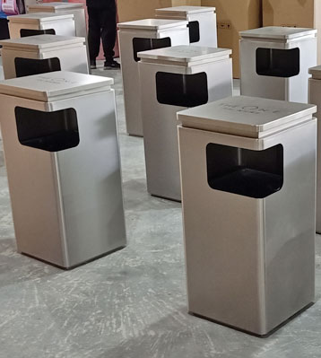 欣方圳樓盤不銹鋼戶外垃圾桶廠家批量生產(chǎn)圖