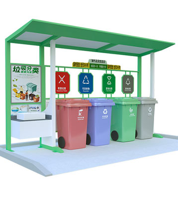 設(shè)有擋雨棚,可配備垃圾箱信息顯示屏、防水照明燈、廣告屏,進(jìn)行地面硬化。對(duì)社區(qū)玻金塑紙可回收物,其他垃圾,廚余垃圾,有害垃圾等生活垃圾定時(shí)定點(diǎn)投放收集.