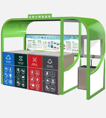 設(shè)有擋雨棚,可配備垃圾箱信息顯示屏、防水照明燈、廣告屏,進(jìn)行地面硬化。對社區(qū)玻金塑紙可回收物,其他垃圾,廚余垃圾,有害垃圾等生活垃圾定時定點投放收集.