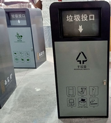 欣方圳室外四種分類推蓋垃圾桶工廠批量生產(chǎn)圖