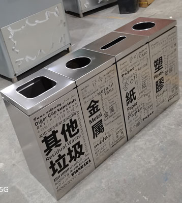 欣方圳多國(guó)文字組合式不銹鋼分類(lèi)垃圾桶工廠生產(chǎn)圖